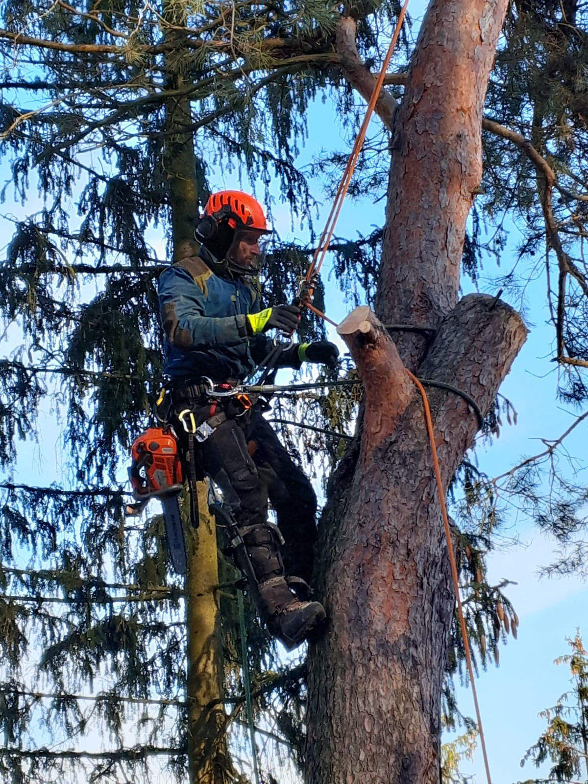 Zajmujemy się wycinką sekcyjną drzew w dostępie linowym, oraz z podnośnika.